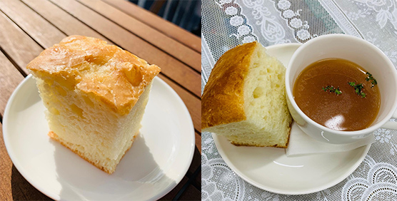 朝、店舗で焼き上げる自家製のフォカッチャ。シンプルだからパスタソースにもピッタリ。